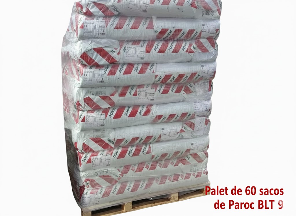 El palet de lana de roca PAROC BLT 9 sirve para aislar con nódulos de lana de roca reciclados, el interior de cavidades, tales como las fachadas, utilizando maquinaria especial de insuflado y equipos instaladores profesionales. También puede usarse para soplar una capa generosa bajo cubierta o tabiques palomeros.  Tiene una densidad insuflada de 60 kg/m3 y soplada de 40 kg/m3. El palet q viene con 60 sacos de 15 kg, es decir lleva un total de 900 kg de lana de roca.